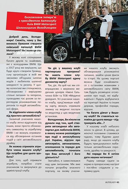 Журнал "AUTOLADY": Ексклюзивне інтерв'ю з президентом ГО “Club-Kyiv BMW Motorsport”.